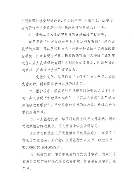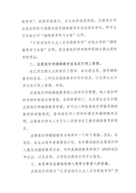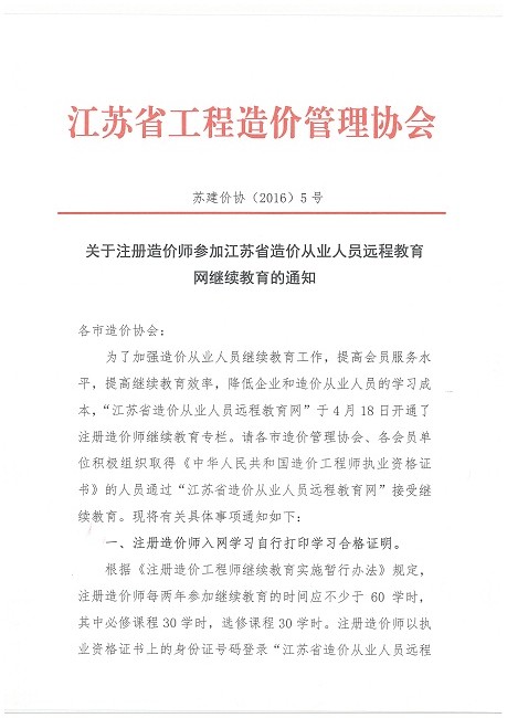 關(guān)于注冊造價(jià)師參加江蘇省造價(jià)從業(yè)人員遠程教育網(wǎng)繼續教育的通知